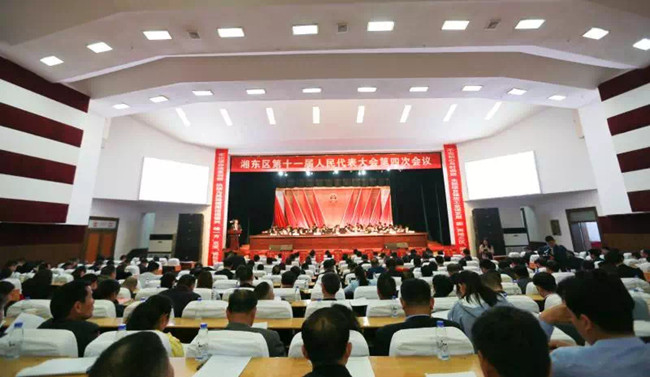 追梦新时代,奋斗新征程。4月17日,湘东区第十一届人民代表大会第四次会议隆重开幕。来自全区各条战线的人大代表将履行宪法和法律赋予的神圣职责,竭诚尽职献诤言,共谋发展聚合力,共同绘就湘东新时代快速发展的宏伟蓝图。大会主席团常务主席杨博、王志才、王德明、肖继纯、刘翔、刘美峰、汤清明、张培清出席会议并在主席台前排就坐。受区委书记、区长杨博委托,区委常委、常务副区长汤雪林代表区政府向大会作政府工作报告。