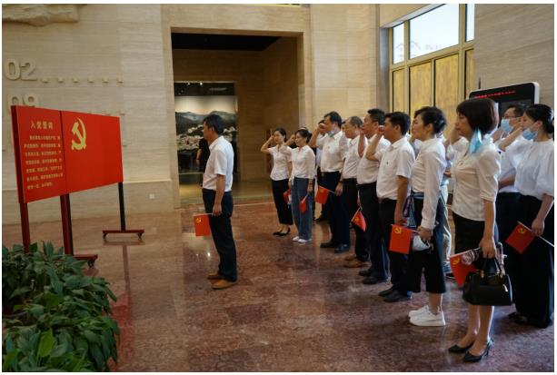 在机关支部书记的带领下,机关全体党员昂首挺胸,高举右拳,以铿锵有力的誓词喊出了共产党人的信心和决心。