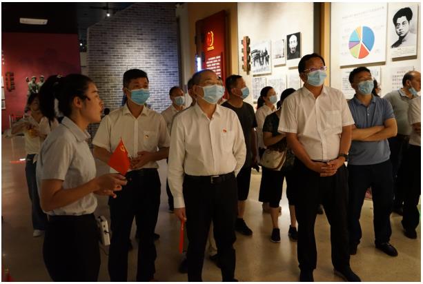 重温入党誓词活动结束后,在纪念馆讲解员的带领下,全体党员干部参观了安源路矿工人运动纪念馆。纪念馆内的一张张照片、一件件实物、一个个场景,再现了以毛泽东同志为首的中国共产党人领导工人运动并和国民党反动派、资本家、地方反动乡绅作斗争的那段血与火的艰难岁月。大家驻足凝视,追寻革命足迹,缅怀革命先烈。